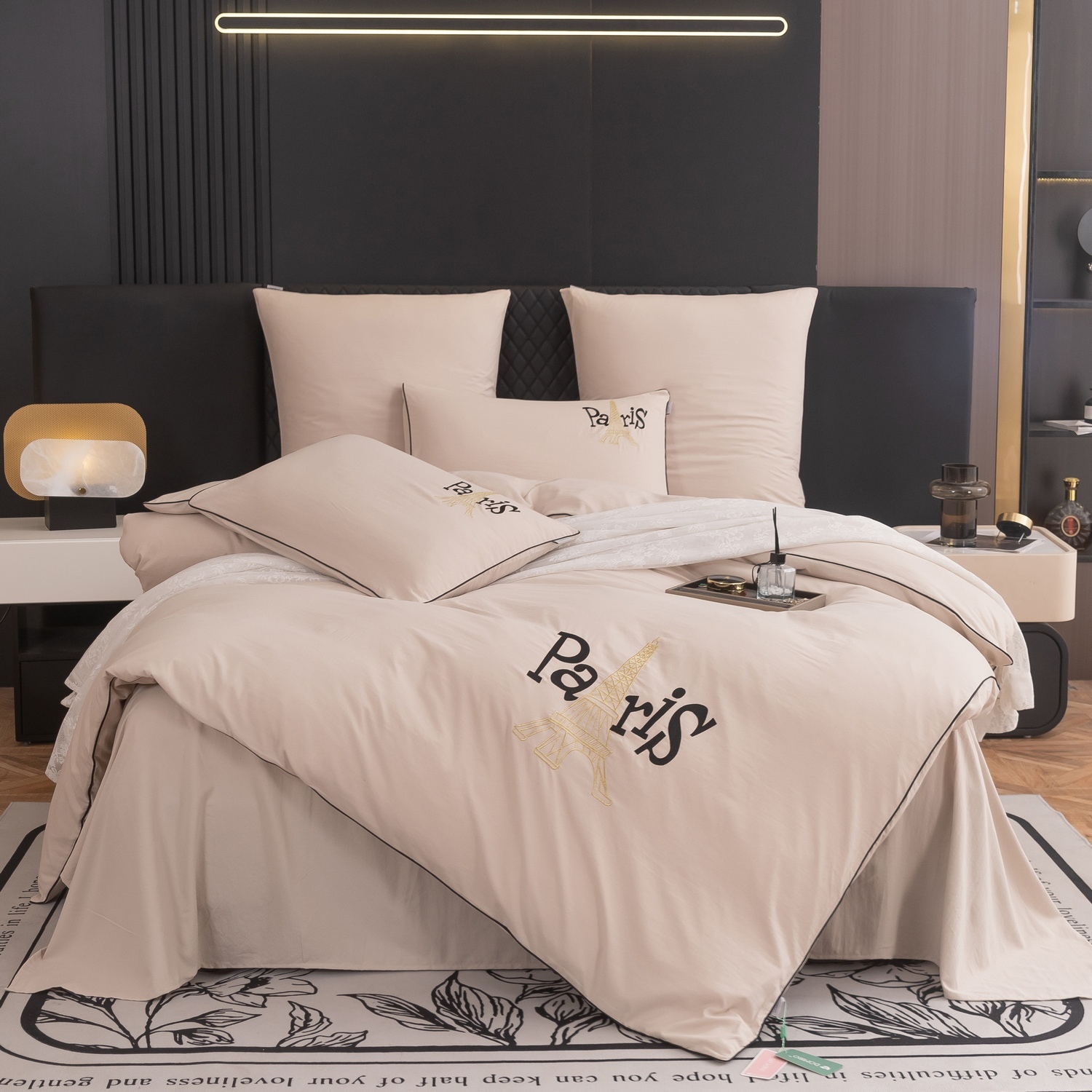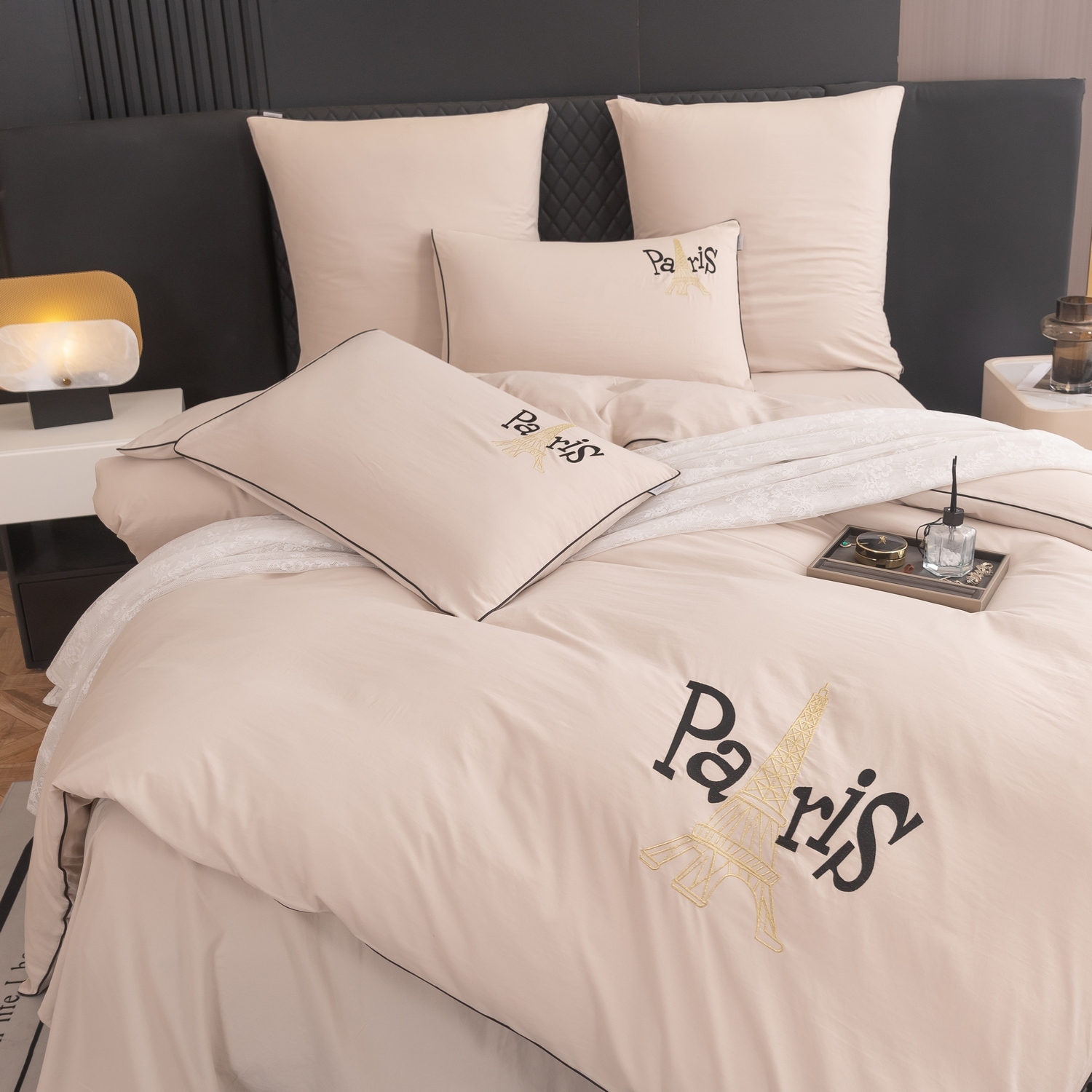 Пододеяльник и наволочки: Украшены вышивкой и кантом по периметру