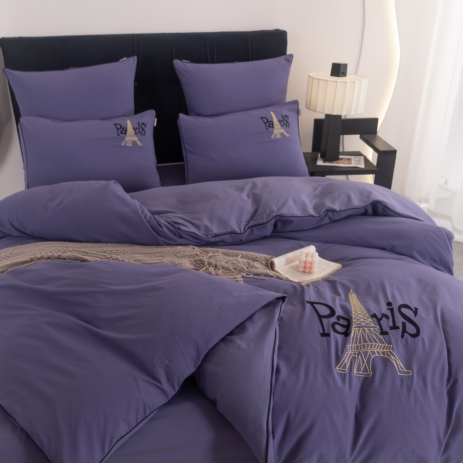 Пододеяльник и наволочки: Украшены вышивкой и кантом по периметру