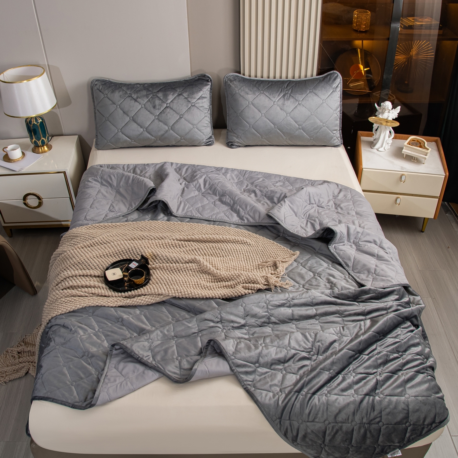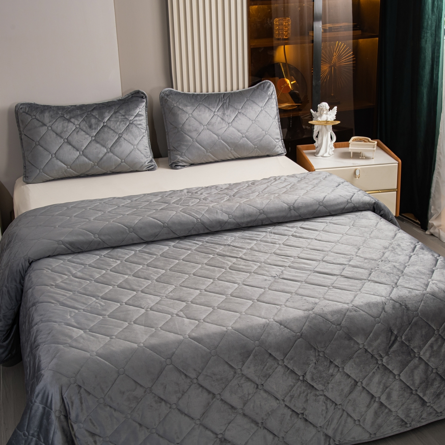 Покрывало украшено стежкой "Ромб" с металлизированной нитью, что подчеркнёт стиль постели и окружающего её пространства.